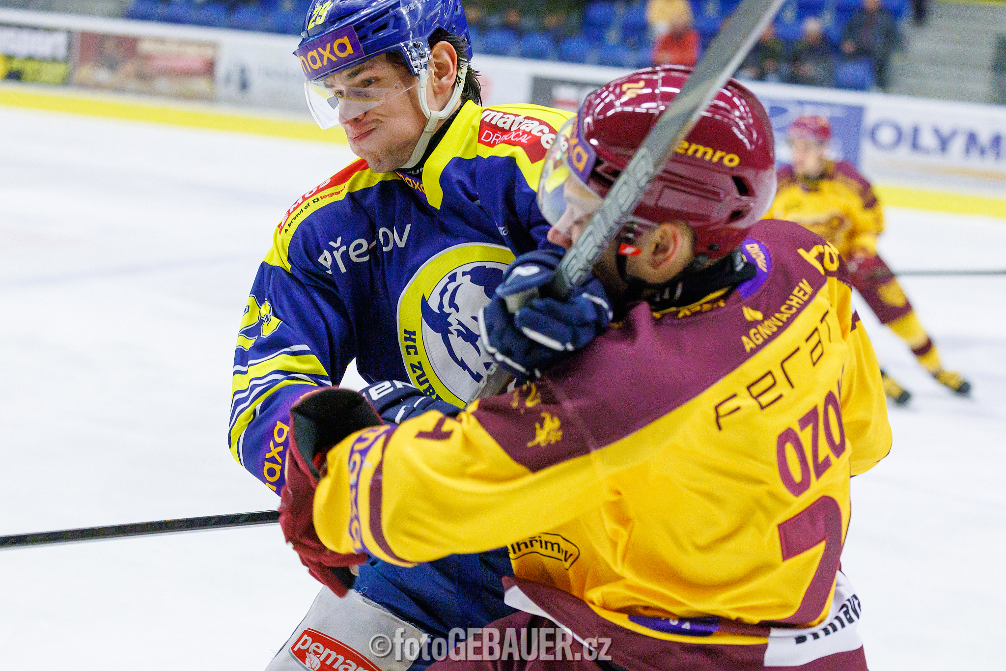 Na zápase se pohybovala řada fotografů, ale já si zakládám na profesionálním přístupu – od výběru techniky, přes práci se světlem až po finální postprodukci. Každý snímek prochází pečlivým výběrem a úpravou, aby zachytil nejen děj, ale i emoce, které k hokeji patří.